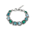 Giovanni Raspini - Il bracciale Blue Ivy unisce l’eleganza della lavorazione artigianale all’armonia cromatica di dieci grandi cristalli rotondi sfaccettati, nelle delicate tonalità del celeste, dell’azzurro e del verde smeraldo. Un raffinato decoro ispirato al tema floreale, realizzato con l'antica tecnica della fusione a cera persa, avvolge il bracciale in una danza di piccoli dettagli. Interamente fatto a mano in azienda.