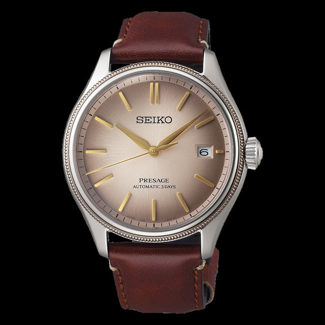 Questo modello incarna con precisione lo spirito della collezione Classic Series, attraverso un’interpretazione raffinata del design orologiero tradizionale. Il suo quadrante sfoggia la storica tonalità Shiracha, colore emblematico dell’epoca Edo, sublimata da un effetto sfumato che richiama l’invecchiamento naturale dei materiali pregiati. Questo gioco di sfumature conferisce all’orologio una profondità visiva e un’autenticità unica. La cassa in acciaio inossidabile lucido a specchio crea un sottile contrasto con la lunetta dalla finitura marrone caldo, ottenuta tramite trattamento ionico, per un risultato al tempo stesso vintage e sofisticato. Il cinturino in pelle, realizzato in collaborazione con un artigiano giapponese di fama nel settore calzaturiero, è ricavato da scarti di pelle di alta qualità accuratamente selezionati. Questo processo dà vita a un prodotto durevole ed elegante, espressione di un approccio etico e di un design responsabile. La fodera interna, ispirata ai materiali utilizzati per le calzature, garantisce un comfort morbido e avvolgente, fedele alla maestria artigianale giapponese.