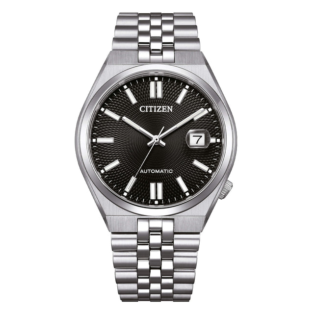 Cassa e bracciale in acciaio. Fondello con oblò trasparente e movimento a vista. Vetro zaffiro. WR 5 bar.