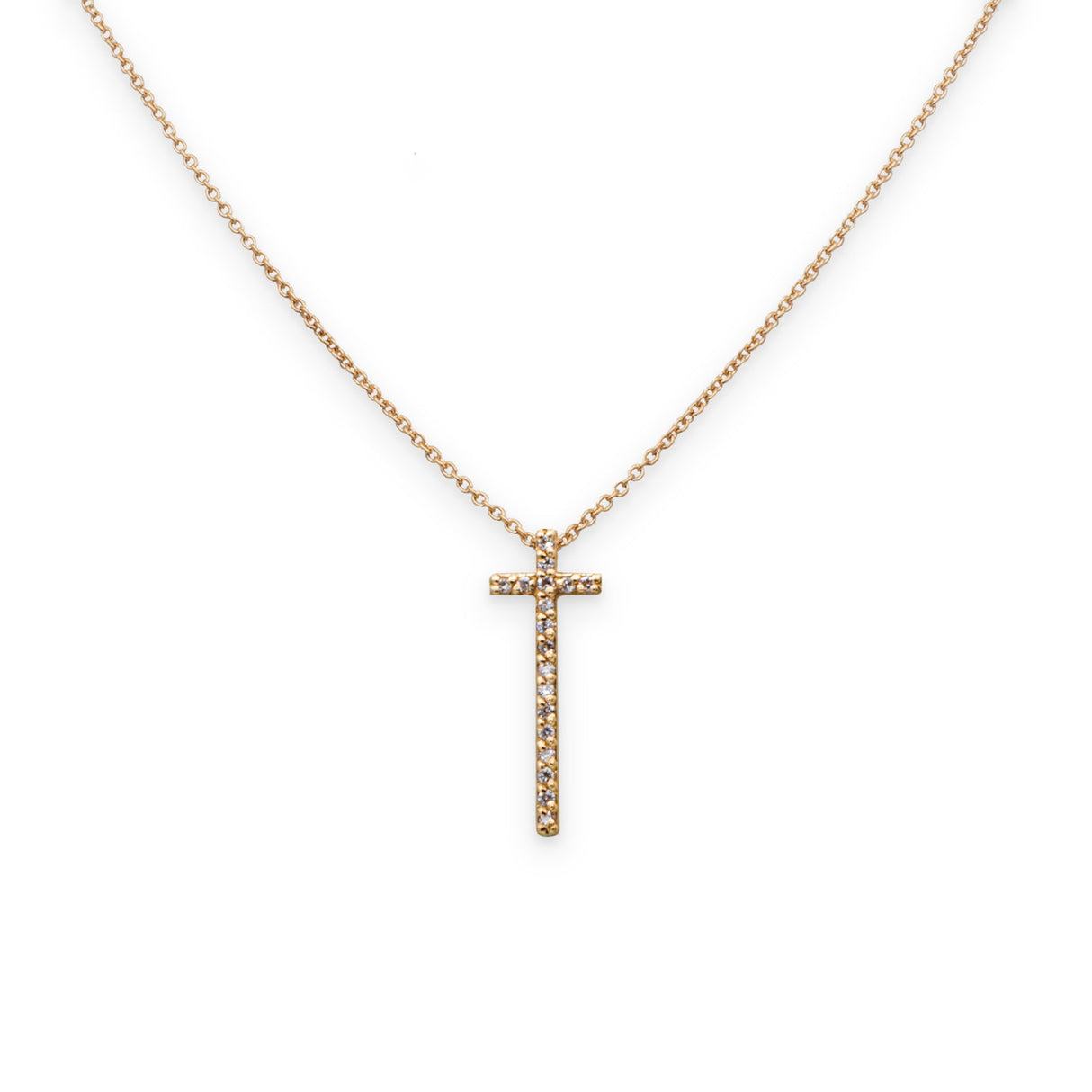 Collana in Oro Rosa 18 kt con croce di Diamanti Bianchi taglio brillante.