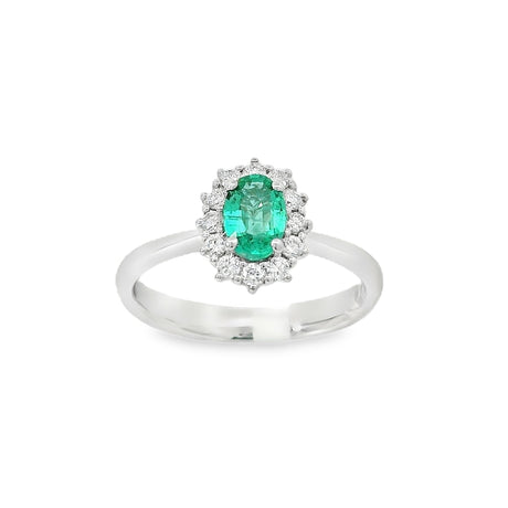 Anello in Oro Bianco con Smeraldo 0.41kt e Diamanti
