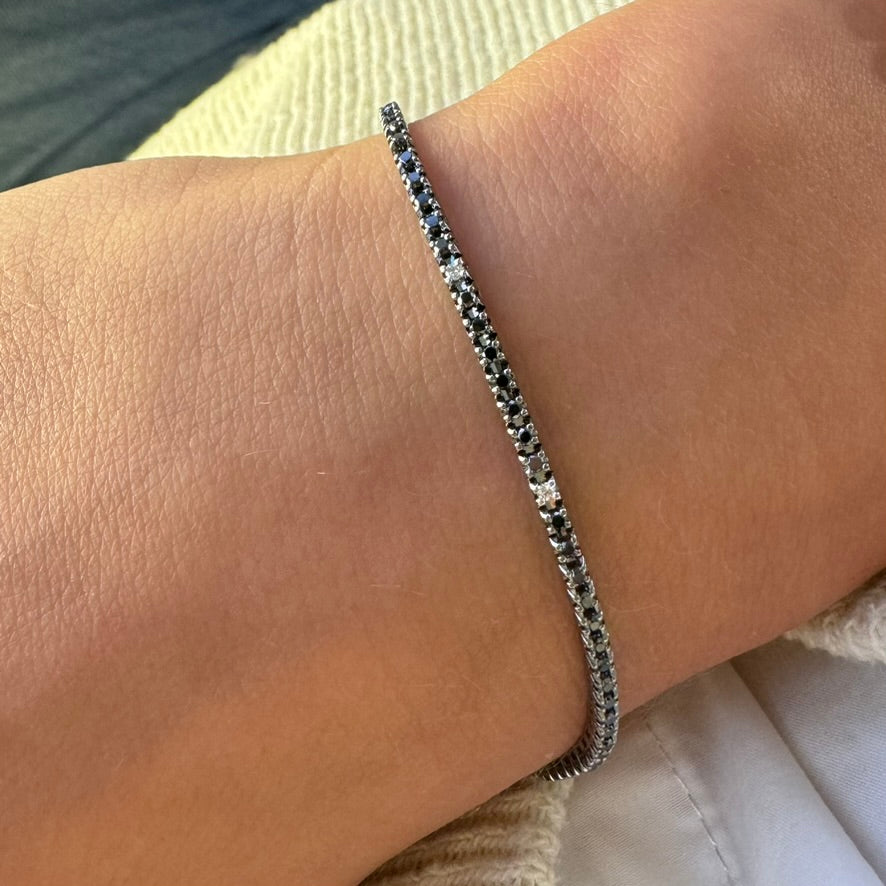 Bracciale Tennis Oro Bianco Diamanti Neri ct 1,10 e 5 Diamanti Bianchi