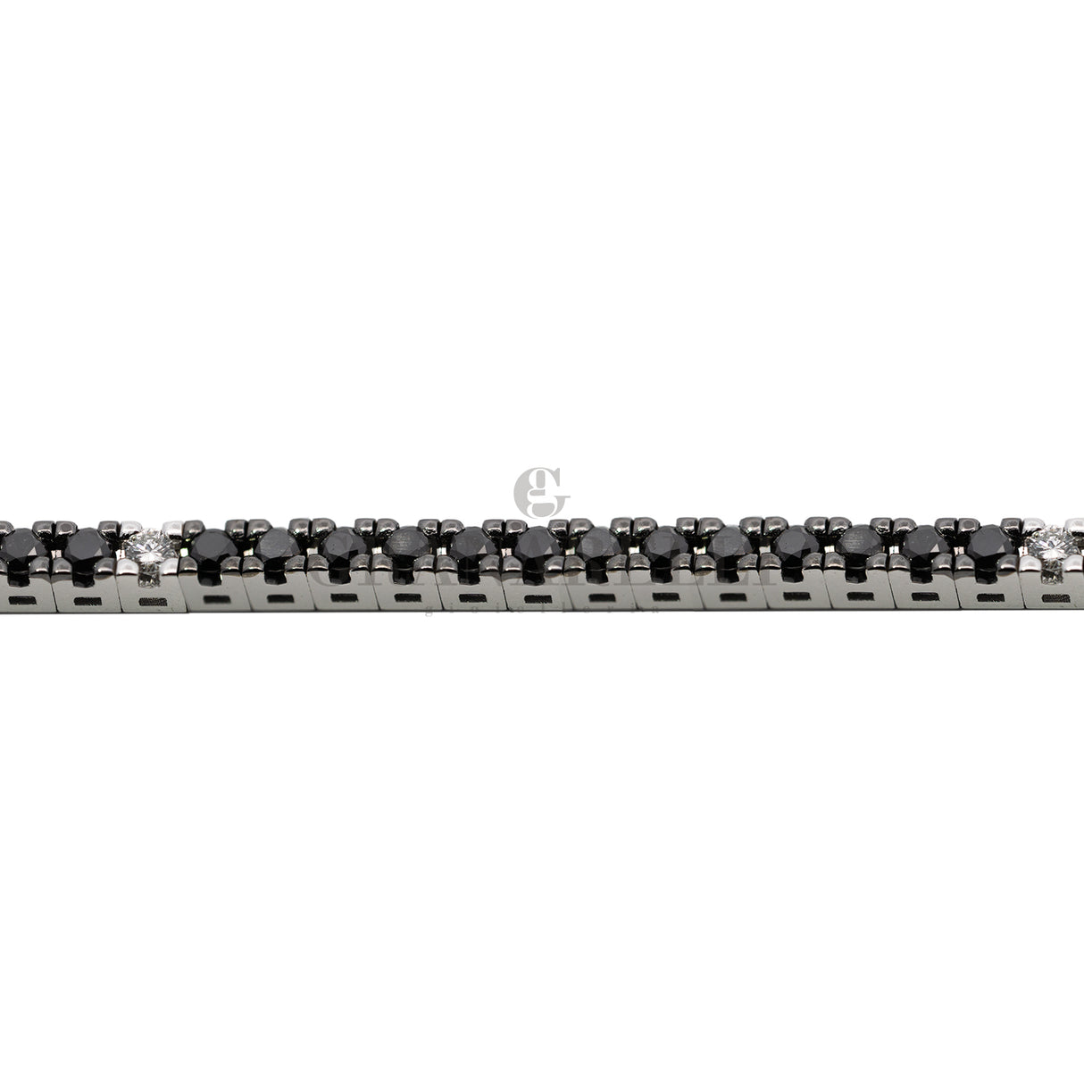 Tennis in oro bianco con punte brunite 18 kt e Diamanti neri con 5 diamanti Bianchi