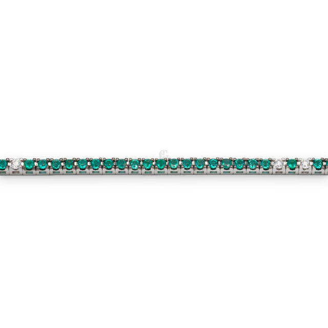 Tennis in oro bianco 18 kt e Smeraldi, con cinque Diamanti brillanti spot