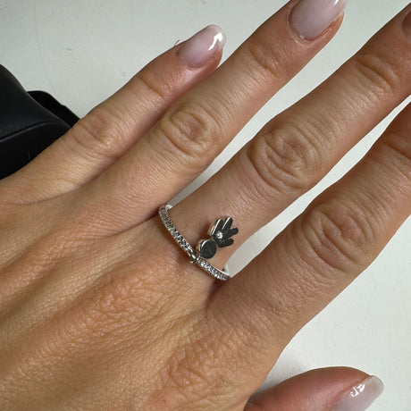 Anello con rosa di Diamanti Neri e Bianco centrale Oro Bianco