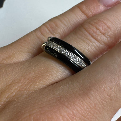 Anello con Diamanti e Onice Oro Bianco