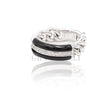 Anello in oro bianco 18 kt con diamanti e onice con fascia a corda