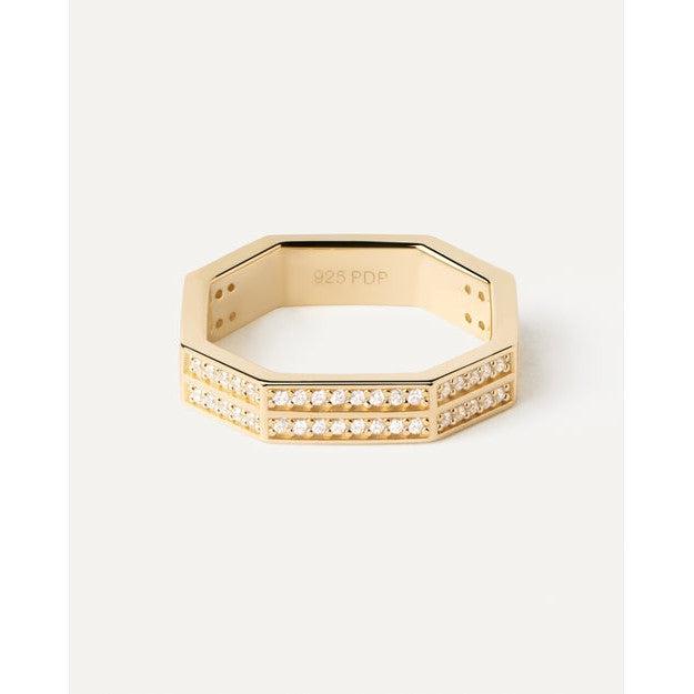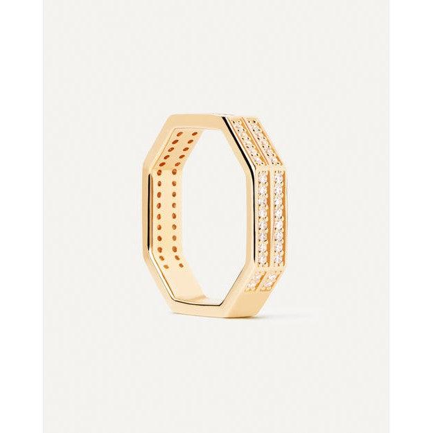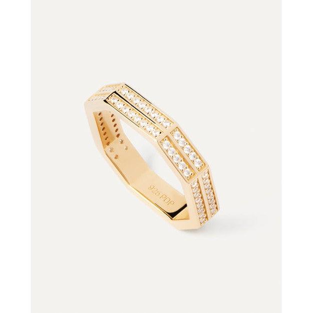 Anello eternity placcato in oro con zirconi bianchi a taglio rettangolare