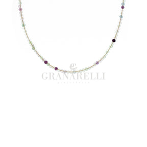 Collana con pietra floride multicolor naturali. Oro giallo 18k, regolabile 38-42 cm, chiusura a moschettone.