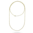 Collana lunga con maglia cheval da portare ad uno, due o tre giri. Chiusura con moschettone a forma di cuore con zirconi bianchi.
