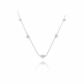 Collana ciondoli cuori micro in oro bianco 18 kt e diamanti bianchi.