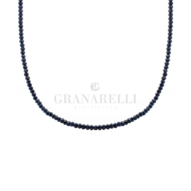 Collana con zaffiri blu naturali. Oro bianco 18k, regolabile 38-42 cm, chiusura a moschettone.