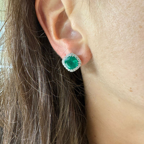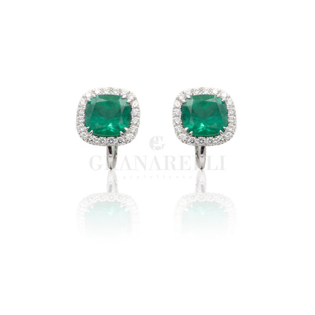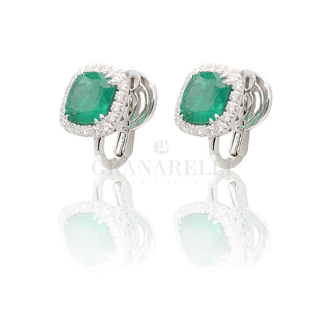 Orecchini Diamanti e Smeraldo Oro Bianco