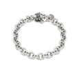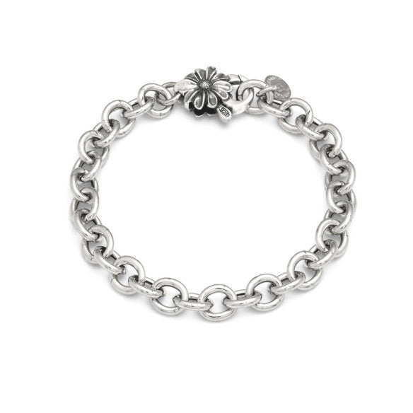 Giovanni Raspini - Questo raffinato bracciale in argento brunito si distingue per la sua pregiata lavorazione artigianale. Il motivo margherita, un evergreen della Maison Giovanni Raspini, in versione double face con funzione di chiusura-decoro, impreziosisce il design, combinandosi armoniosamente con la catena a maglia ovale in argento. Realizzato a mano in azienda.