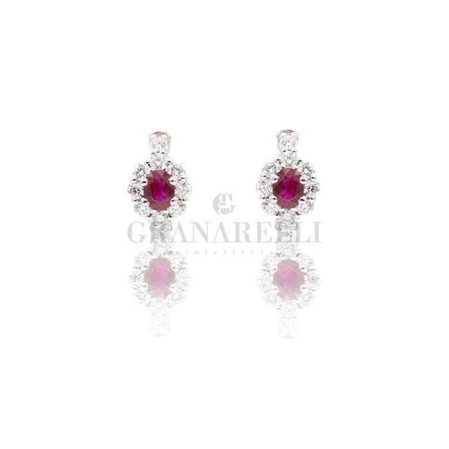 Orecchini Cerchio Rubini e Diamanti in Oro Bianco 18kt