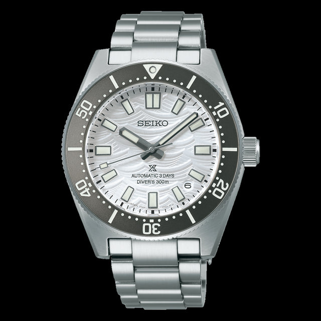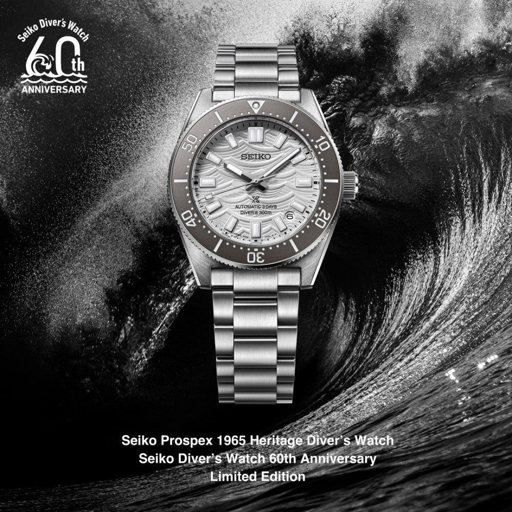 Il Seiko Prospex 1965 Heritage Diver’s Watch Edizione Limitata 60° Anniversario celebra sei decenni di innovazione Seiko nell'orologeria subacquea. Con un quadrante argentato ispirato alle onde del mare e una lunetta grigia elegante, questo orologio unisce design classico e tecnologia avanzata. La nuova clasp regolabile assicura una vestibilità perfetta, mentre il simbolo dell'onda inciso sul fondello testimonia la sua affidabilità. Un pezzo esclusivo per appassionati e professionisti del diving.