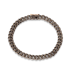 Bracciale uomo linea groumette in titanio, diamanti brown e oro rosso 18 kt. Splendido bracciale interamente realizzato a mano in titanio, dove una serie di 29 maglie snodate costituiscono l'intera struttura di questo gioiello. Su ogni maglia sono incastonati quattro diamanti brown per un totale di 164 diamanti per totale 2,44 ct. Il bracciale termina con una pratica chiusura in titanio impreziosita da diamanti brown e da un otto di sicurezza in oro rosso 18 kt.Un prezioso ed importante gioiello firmato MANO|J. dove i diamanti e la leggerezza del titanio sono i veri protagonisti.
