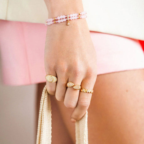 ELASTISCHES ARMBAND MIT MIKROSTEINEN UND KUTTENANHÄNGER