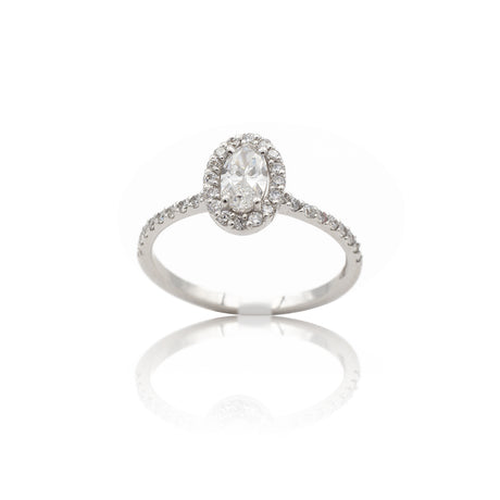 Ovaler Halo-Ring mit Diamantschiene aus Weißgold