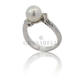 18 kt Weißgoldring mit Saphir und Diamanten.