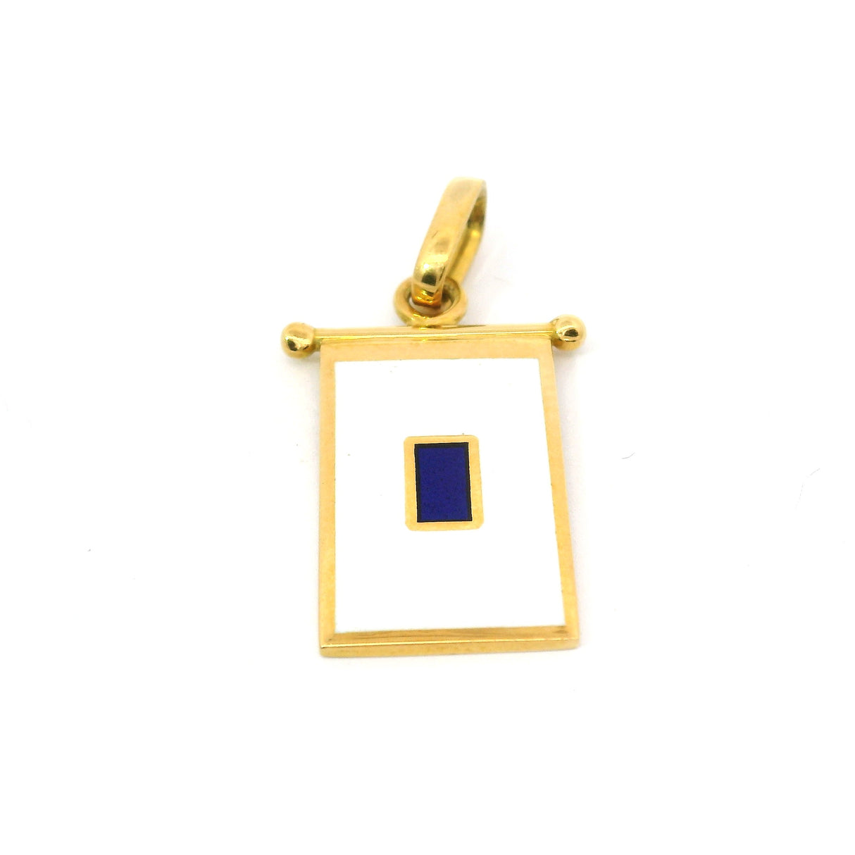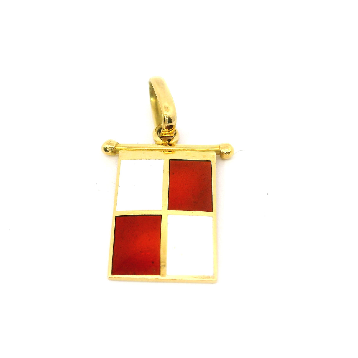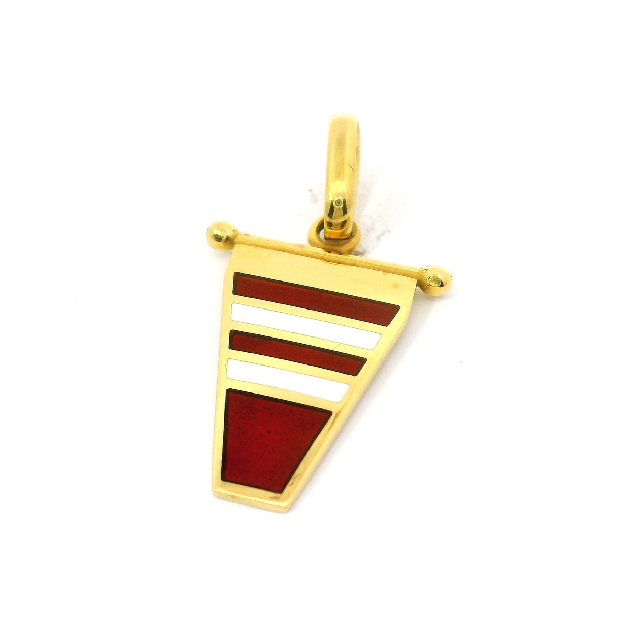 Dieser wunderschöne Anhänger ist aus 18-karätigem Gelbgold gefertigt und trägt eine Seeflagge mit den Initialen der Firma Giovevpluvio.