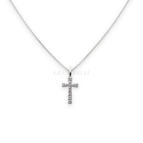 Kreuzkette in 18 kt Weißgold mit weißen Diamanten
