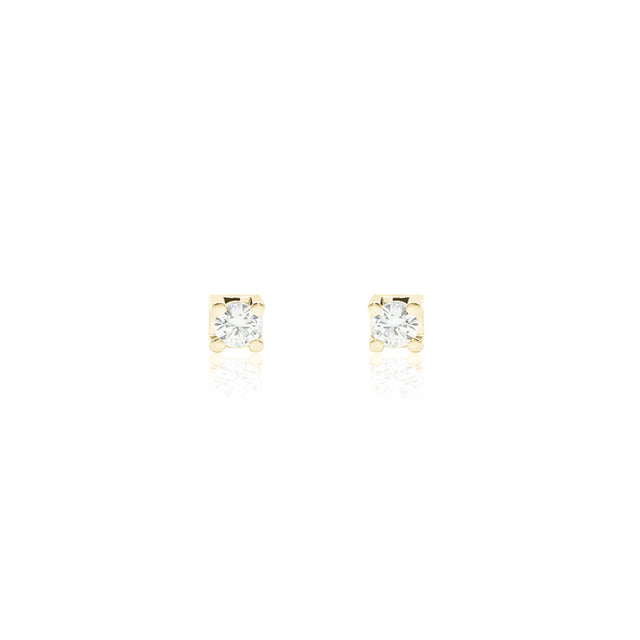 Orecchini Punto Luce a lobo con castone abbassato quadrato in oro giallo e diamanti.