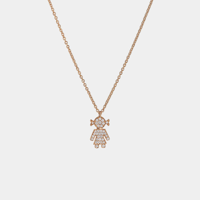 Rundhalsausschnitt Einfache Linie Kind in 18 kt Roségold und weißem Diamant Pavè.