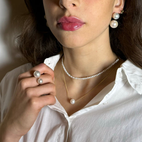 Einzelner Doppelperlenohrring aus Roségold Ø 10-11 mm