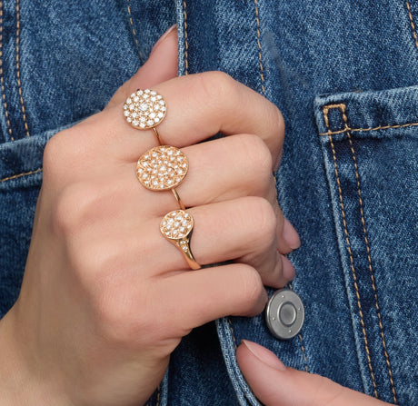 Anello Sigillo Tondo Oro Rosa e Diamanti Gerbella