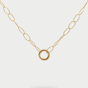 Girocollo Rolò chain con base cerchio, elegante e versatile. Può essere indossato da solo o personalizzato con charm sparsi sulla catena o nell'anello cerchio.