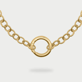 Girocollo Rolò chain con base cerchio, elegante e versatile. Può essere indossato da solo o personalizzato con charm sparsi sulla catena o nell'anello cerchio.