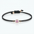 Schwarzes Kabelarmband mit rosa Saphir. Niemals aufhören zu scheinen. Mit wesentlichen Linien. Mann oder Frau, die dieses Armband ist, ist fast unzerstörbar.