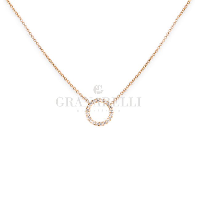 Crew-Hals-Linie "Light" 18 KT-Roségold mit Rubin-zentraler Quadrat- und weißer Diamantkontur.