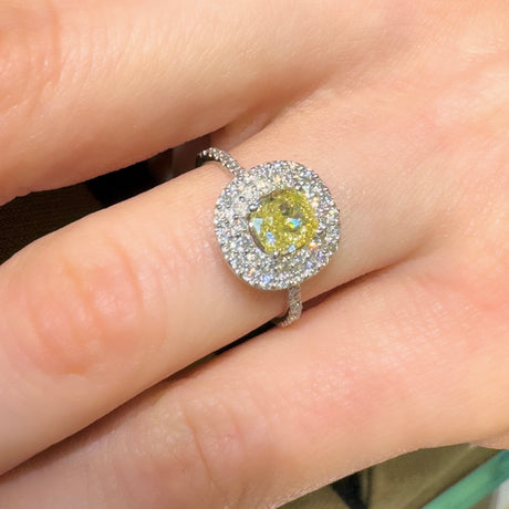 Ausgefallener Halo-Ring mit Diamantschiene aus Weißgold