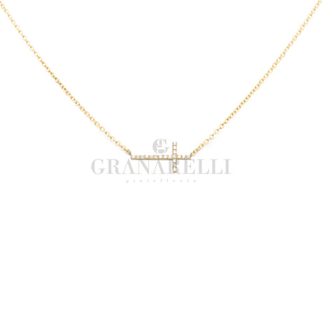 Girocollo Croce sul Fianco in Oro Giallo Diamanti Bianchi