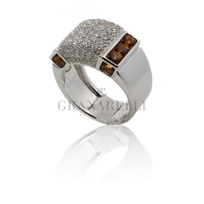18 kt Weißgoldring mit Saphir und Diamanten.
