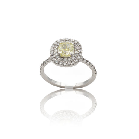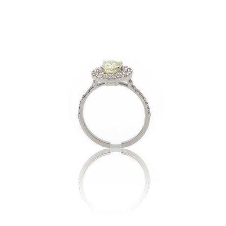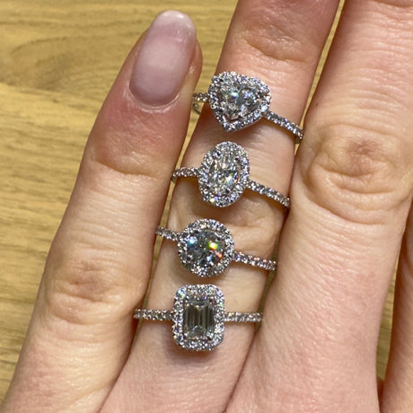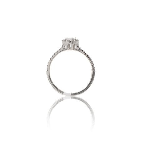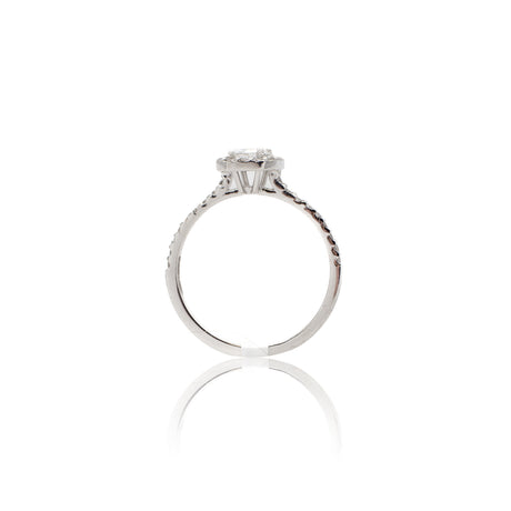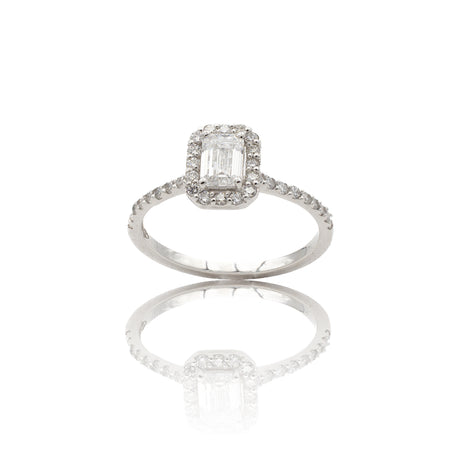 Brillanter Halo-Ring mit Diamantschiene aus Weißgold