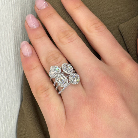 Ausgefallener Halo-Ring mit Diamantschiene aus Weißgold