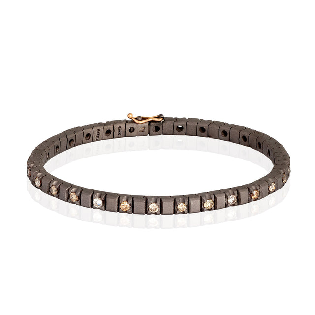 BRACCIALE TENNIS CLASSICO IN TITANIO, ORO ROSSO 18 KT E DIAMANTI BROWN DA 5 PUNTI ALTERNATI.