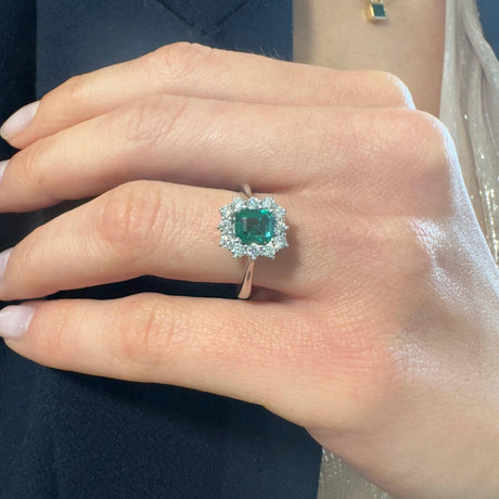 Anello in Oro Bianco con Smeraldo 1.45kt e Diamanti