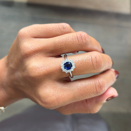 Anello in Oro Bianco con Zaffiro 0.95kt e Diamanti