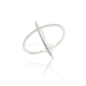 18 ct white gold crossover ring with brilliant cut white diamonds.
