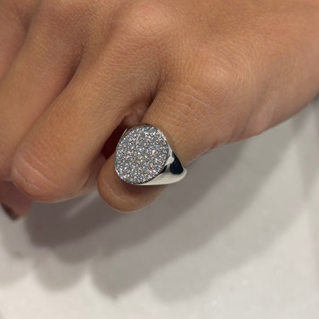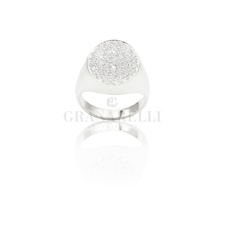 Anello con rosa di Diamanti Neri e Bianco centrale Oro Bianco