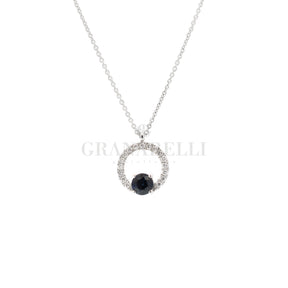 Choker in 18 kt white gold and white diamonds with blue sapphire.