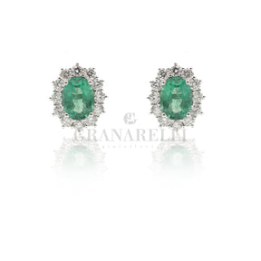 18kt white gold lobe earrings with Central emerald and white diamonds.