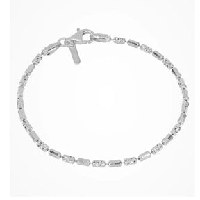 Bracciale in argento con catena a palline ed elementi cilindrici diamantati, per una luminosità che dura nel tempo.