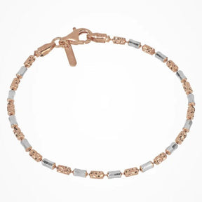 Bracciale in argento e placcato oro rosa con catena a palline ed elementi cilindrici diamantati, per una luminosità che dura nel tempo.