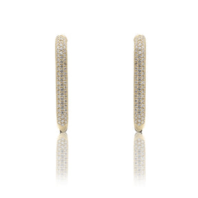 Hoop earrings in 18 kt yellow gold and white diamonds.