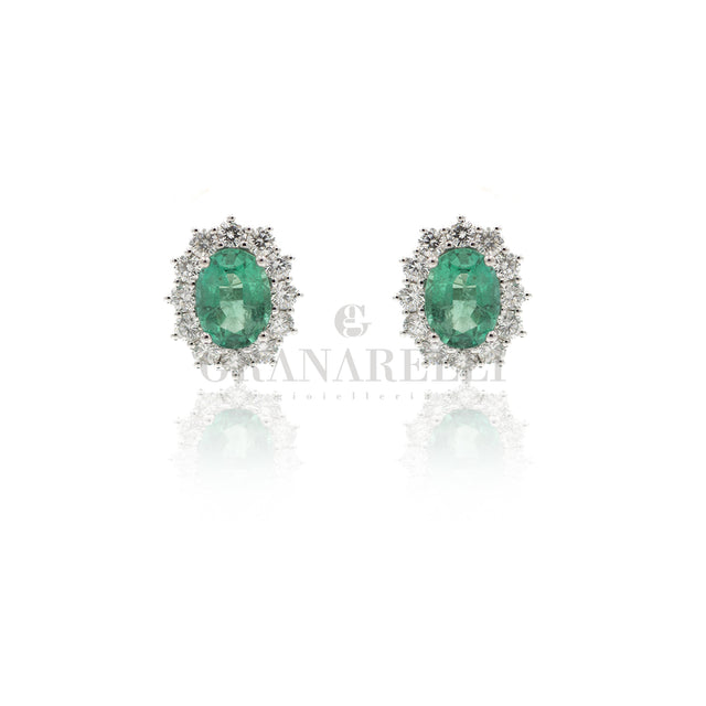 Oval emerald earrings 0.55kt and diamonds